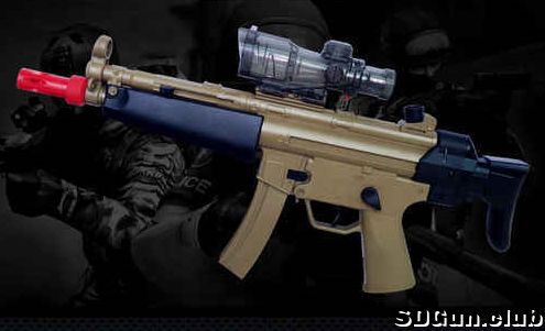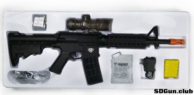 以SIG552突击步枪为真枪原型的水弹枪,主体为尼龙玻纤材质,但是表面有金属质感。原装品控良好,极少数产品使用过程极少数中存比如偶尔通电无法击发,扳机护圈固定的销钉安装不牢固等故障,但是总体评价比较优秀。