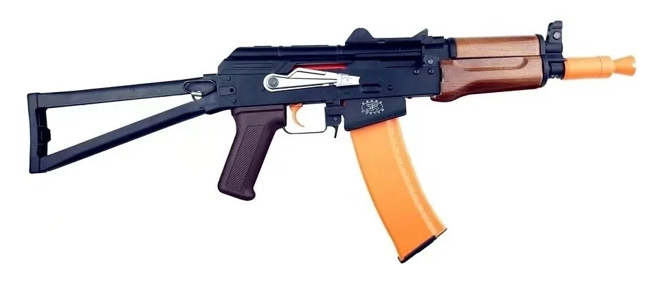 STS(食铁兽)制造发售的,以AKS-74U短突击步枪为真枪原型的水弹枪。STS AKS-74U 三代的材质进行了升级,原装的尼龙玻纤材质非常坚固但质感比较差,外形细节有细微错误。